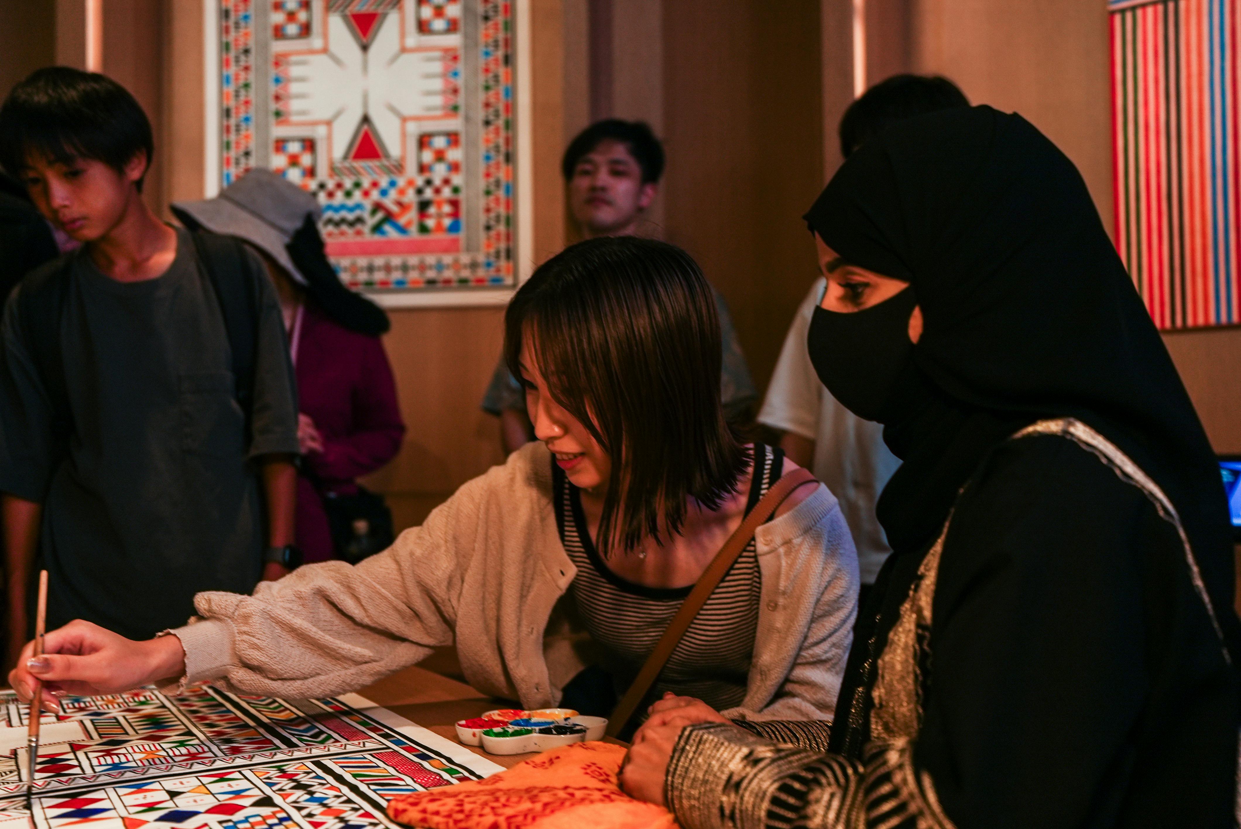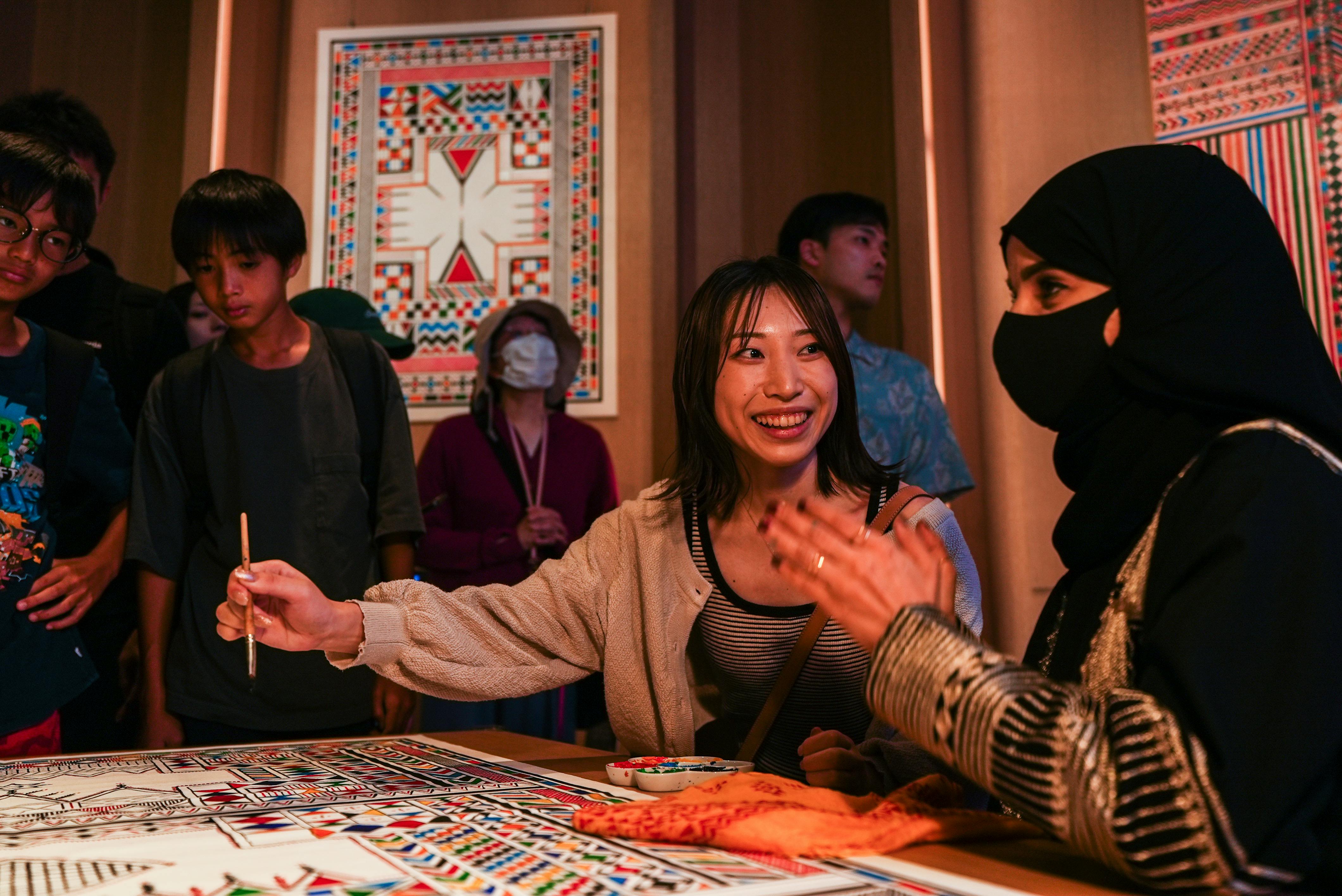 During her residency at the Pavilion, Ahmasani created a new commission while engaging visitors with the techniques and cultural significance of the art form. She introduced the vibrant patterns and symbolic language of her region to a Japanese audience and used the opportunity to foster cross-cultural connections.