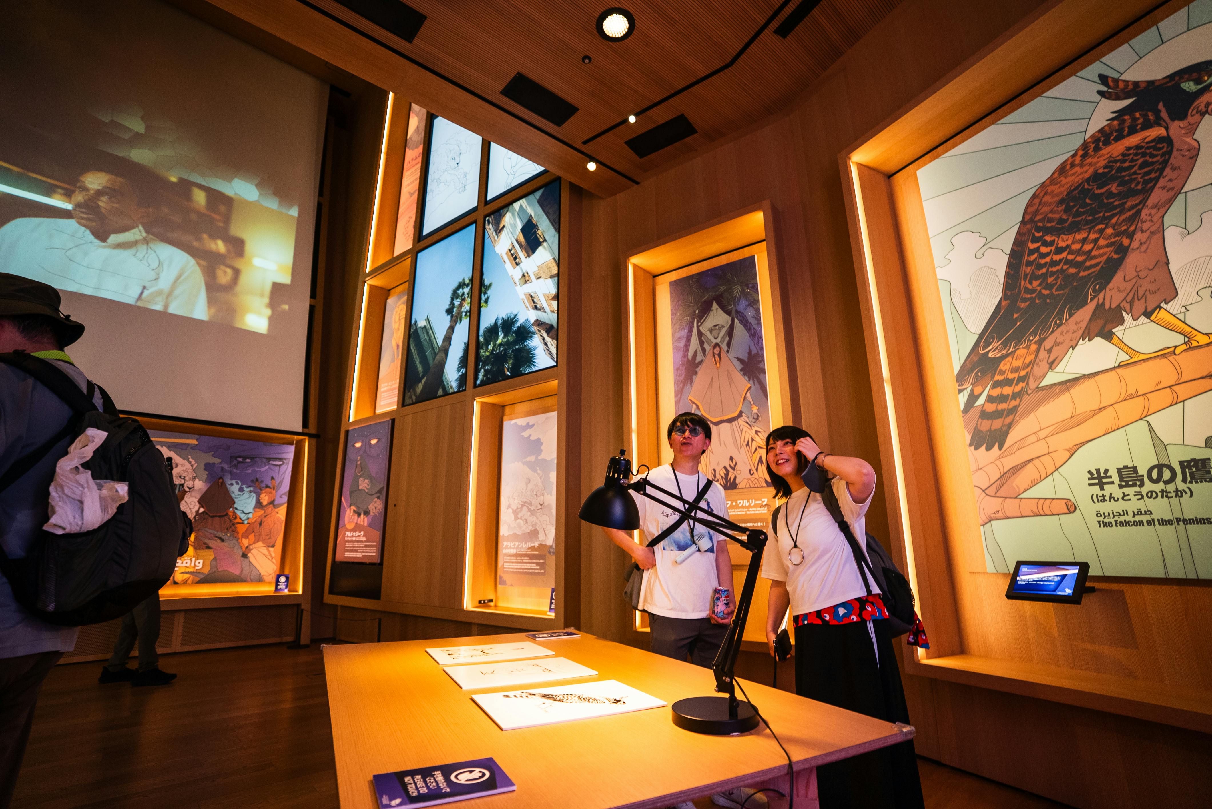 Working in the studio, Saudi Manga artist Sama Albedaiwi produced new artworks in real time, inviting visitors to engage directly with her creative process, adding a sense of immediacy and participation to the exhibition.