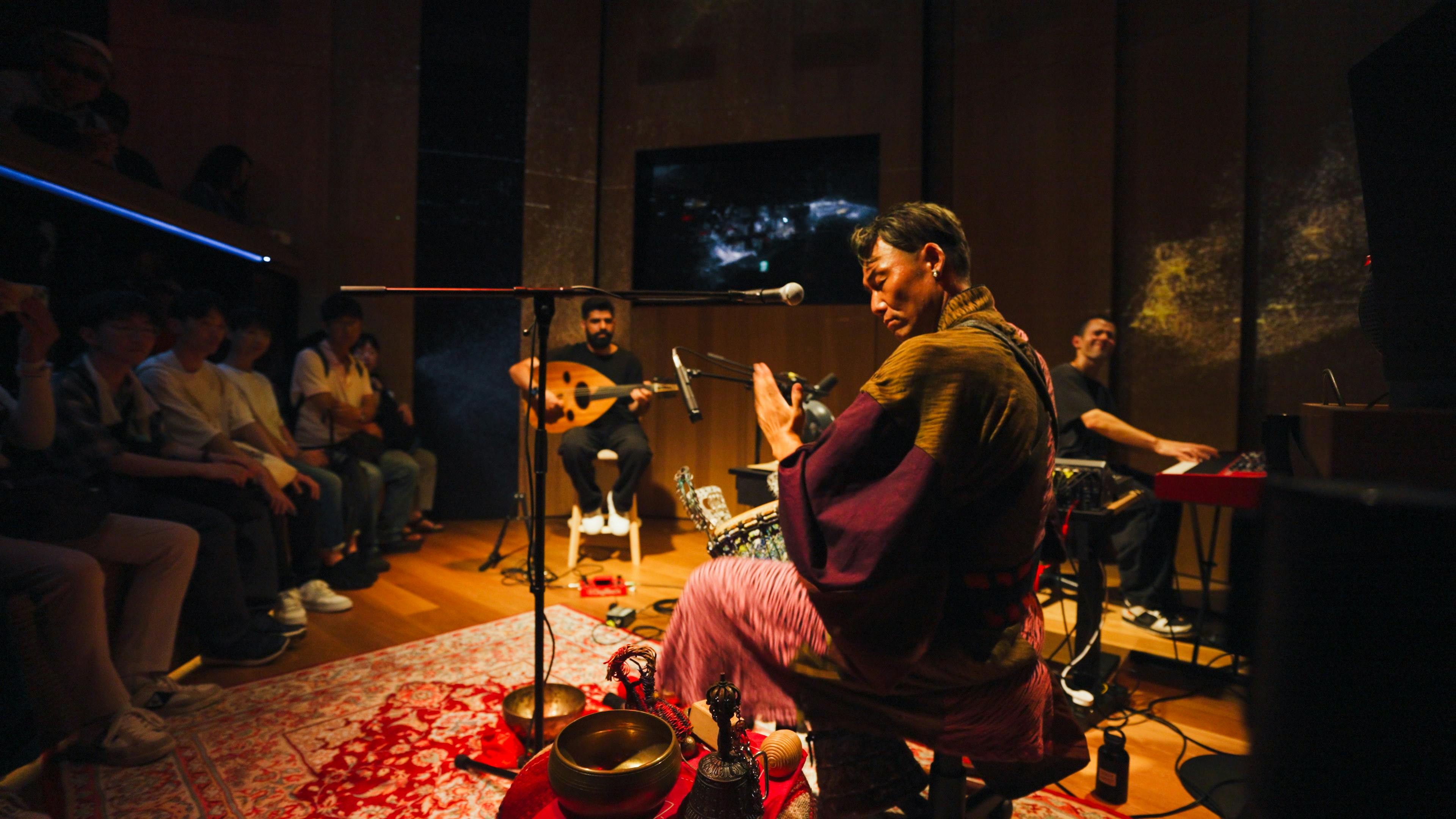 Beyond its premiere within the Pavilion, Explorations of Time extended into a series of pop-up performances in the Pavilion’s Courtyard and across other stages throughout the Expo site. Reef also collaborated with a multicultural group of musicians, allowing the work to move across different settings and connect with diverse audiences.