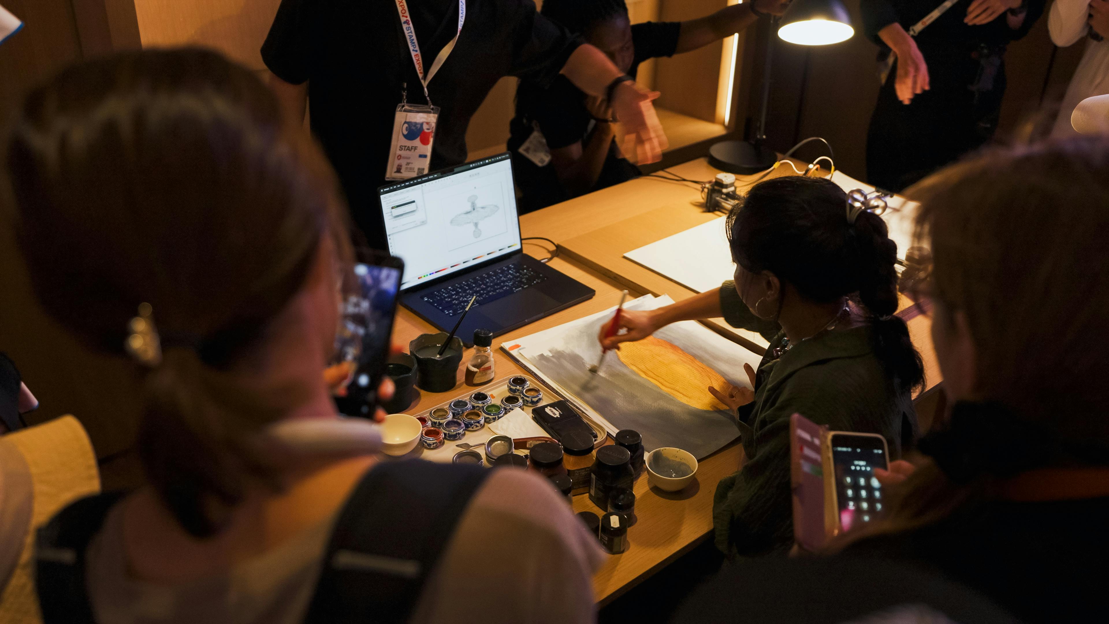 The programme also featured 64 workshops and artist demonstrations, inviting visitors to watch new commissions come to life and take part in hands-on sessions. Activities ranged from stamping and calligraphy workshops to an Al Qatt participatory installation and collaborative digital artworks.
