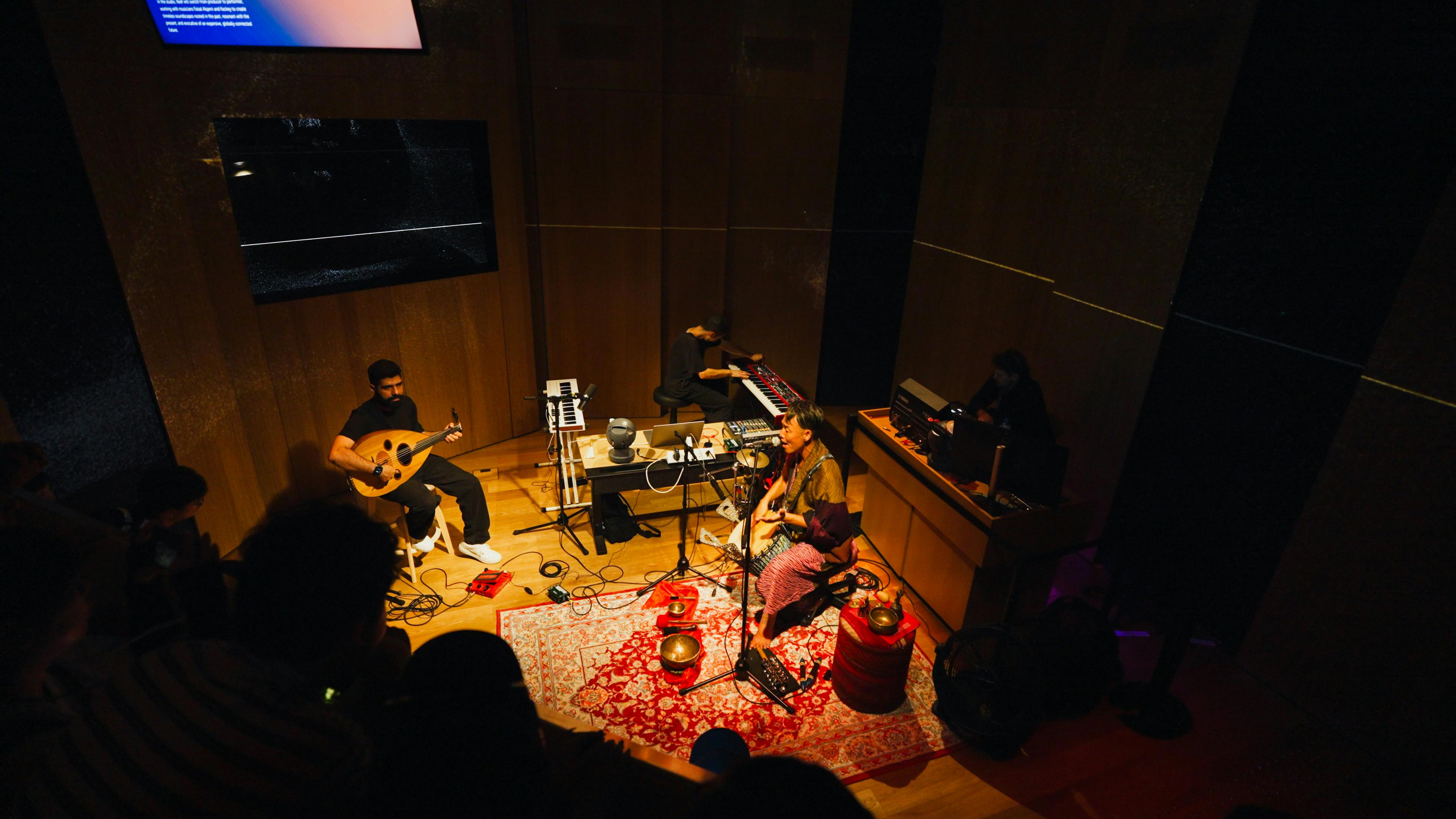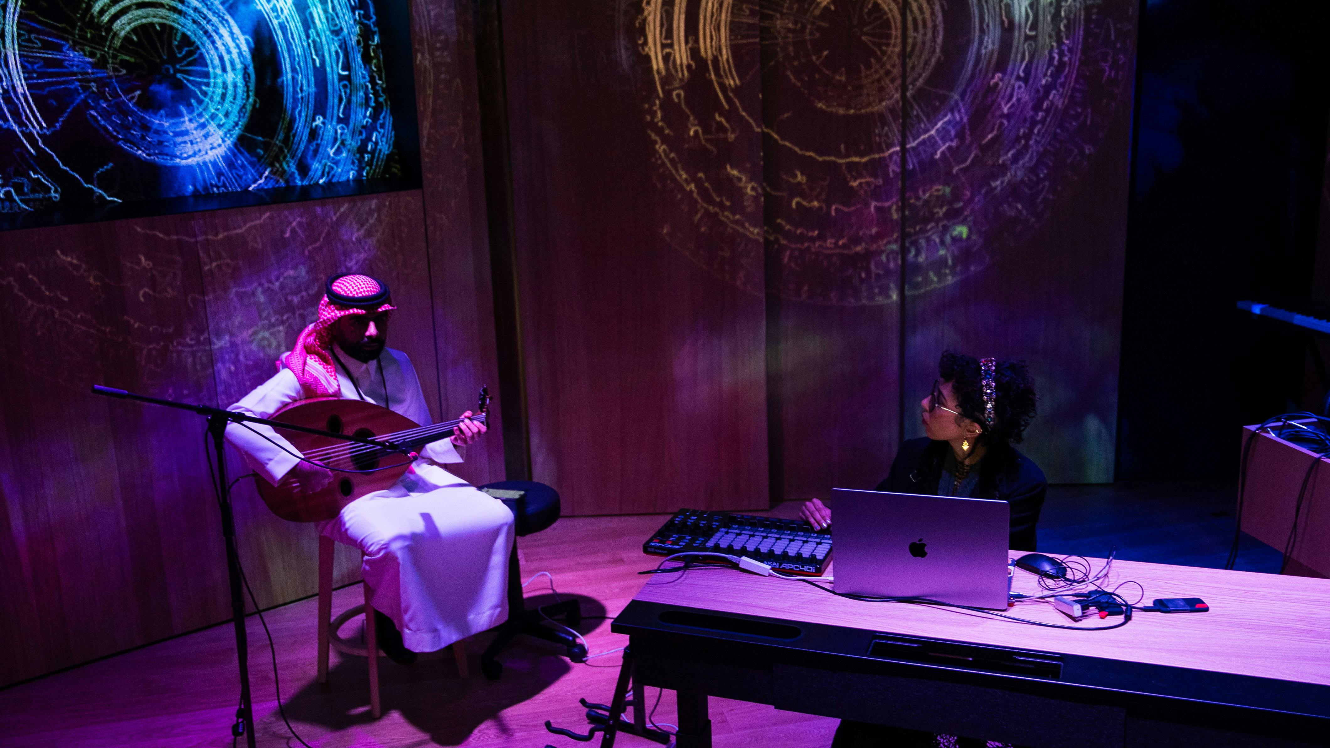 At the heart of the Pavilion were two Cultural Studios - one dedicated to visual art, the other to music. Each was shaped by independent Saudi curators, and connected through a unifying conceptual framework: Space & Time. This overarching narrative guided all commissioned works, creating a cohesive visitor journey while allowing each studio to retain its own distinct curatorial voice.